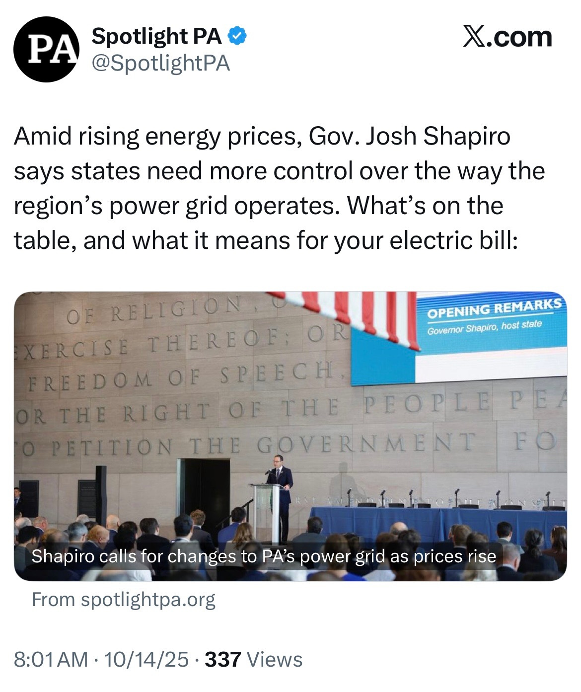 Ohio is one of many states that relies on a regional grid called PJM, which coordinates and plans electricity supply across the region. As Governor Shapiro recently made clear, this is the source for much of the increased costs.