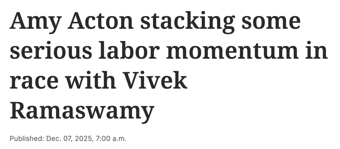 🚨Cleveland.com: Acton stacking some serious labor momentum in race with Vivek Ramaswamy